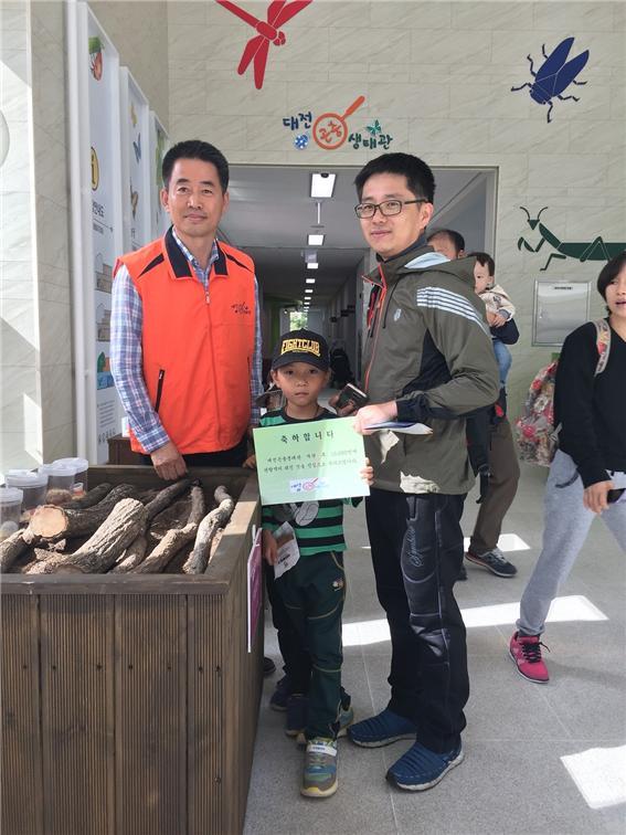 행운의 주인공인 대전 꽃피는학교 노하종(9세) 어린이는“평소 곤충에 관심이 많아 곤충생태관을 찾게 됐고 예상치 못한 1만 번째 주인공이 돼 너무 행복하다”며 활짝 웃었다.