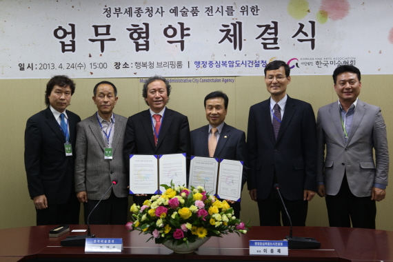 행정중심복합도시건설청(청장 이충재)은 24일 오후 3시 행복청 브리핑룸(304호)에서 한국미술협회(이사장 조강훈)와 정부세종청사 내 예술품 전시를 위한 업무협약(MOU)을 체결했다고 밝혔다.