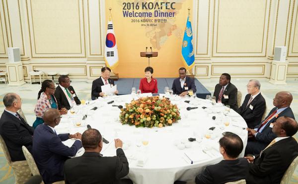 박근혜 대통령은 제5회 한-아프리카 경제협력회의(KOAFEC)에 참가하기 위해 방한한 아프리카 각국의 장·차관들과 국제기구 및 민간기업 대표들을 청와대로 초청해 만찬을 함께 했다고 청와대가 밝혔다.