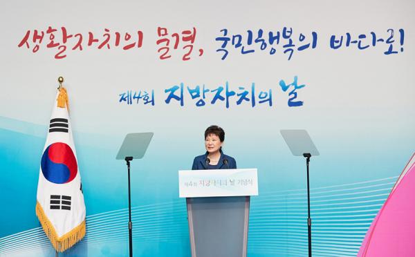 박 대통령은 기념식에서 우리 지방자치는 지난 20년이 넘는 시간 동안 주민 중심의 자치행정을 바탕으로 주민의 삶과 지역경제를 풍요롭게 만드는 많은 성과를 이뤄냈다며, 일선 현장에서 헌신적으로 노력하고 계신 지방공무원들을 비롯한 모든 분들께 감사의 뜻을 전했다.