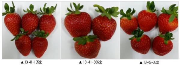 이번에 선보이는 가을딸기 품종 후보들은 13-41-195호, 13-41-386호, 13-42-36호 등 3계통이다.