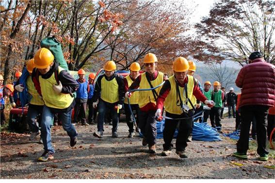 대회는 산불 현장의 여건과 비슷한 급경사의 수목이 우거진 곳에 고도차 70m, 연장거리 약 500m에 진화호스를 설치하고 목적지 물탱크에 진화용수를 빨리 공급하는 것을 평가하는 방식으로 진행됐다.