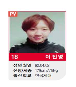 이진영 선수는 한국체대를 졸업하고 2015 신인드래프트에서 SK슈가글라이더즈에 2라운드에 지명됐으며, 피벗으로 180cm의 큰 키에도 불구하고 순발력을 갖췄다는 평가를 받고 있으며, 2016년도 정규리그에서 부상에도 불구하고 21개의 공격포인트와 16개의 블록슛을 기록하는 등 SK슈가글라이더즈가 5위에 오르는데 일조를 한 바 있다.