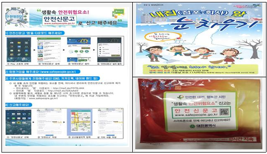 이번 캠페인은 겨울철 화재 등 안전사고 예방, 폭설·한파로 인한 안전사고 예방, 생활 속 안전위협 요소를 편리하게 신고할 수 있는‘안전신문고’앱 정착을 위한 홍보 전단지도 함께 배부했다.