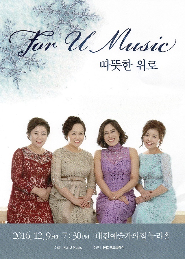 오는 12월 9일 예술가의집 누리홀에서 4명의 중견 피아니스트 하영미, 강정호, 이애리, 권지영이 한자리에 모여 대전 공연을 개최한다.