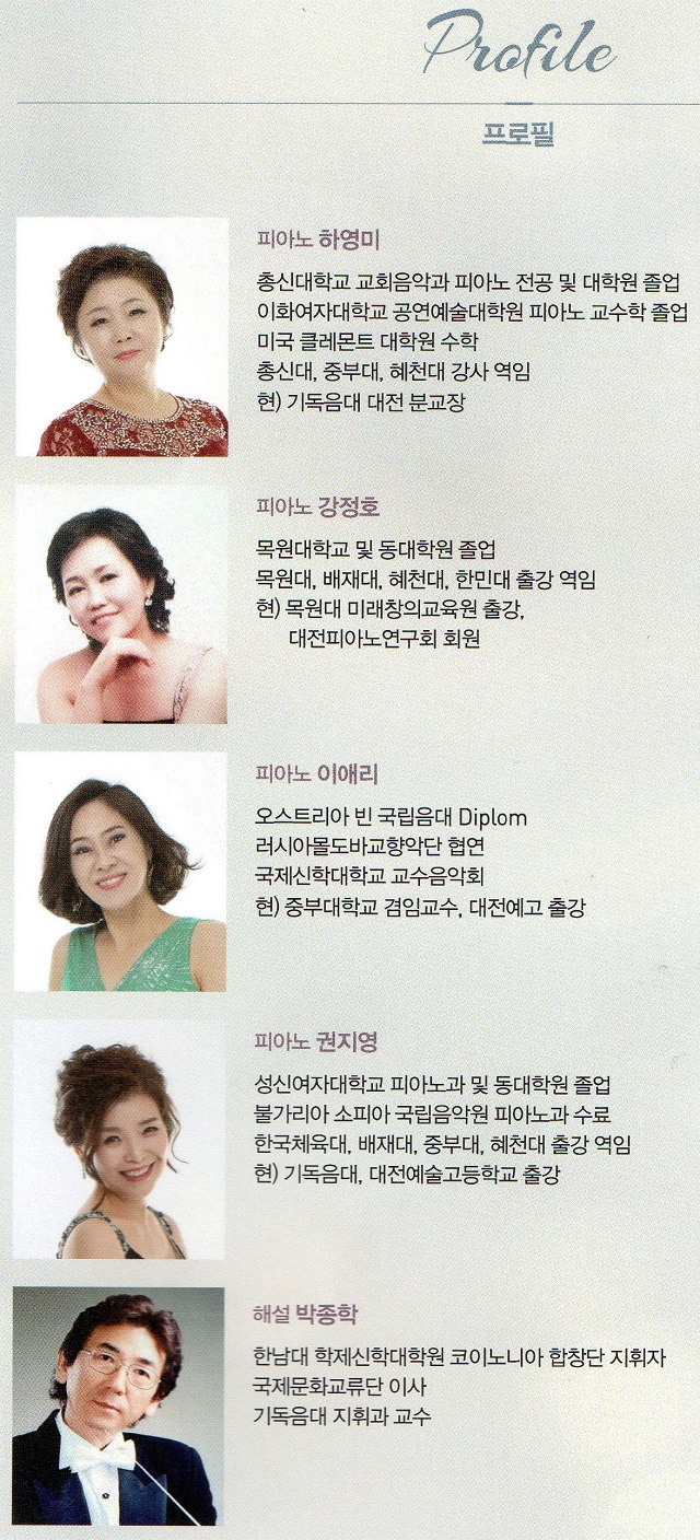 또한 기독음대 교수로 재직 중인 박종학 교수의 쉬운 해설이 함께하여 편안한 음악회 관객들에 눈길을 끌고 있다.