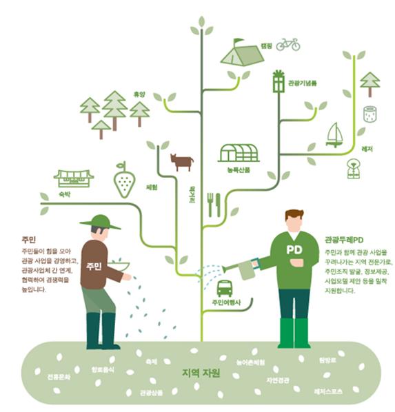 ‘관광두레’는 우리의 전통적 공동체 문화인 ‘두레’와 ‘관광’을 결합한 것으로서, 주민공동체가 주도하는 지속 가능한 관광사업체를 육성하고자 하는 목적에서 2013년부터 추진된 사업이다. 문체부는 지역주민이 자발적으로 협력해 다양한 분야의 관광사업체를 만들고 자립적으로 경영할 수 있도록 그 과정을 지원하고 있다.