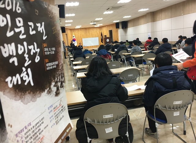 대전평생교육진흥원(원장 송용길)은 지난 17일 오전 10시 30분 ‘2016년 인문고전 백일장 대회’를 대전평생교육원 보문산 4층 강의실 및 컨퍼넌스 홀에서 개최했다.