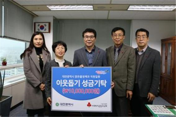 [세종TV-김선규 기자] 대전광역시는 지난 22일 공공하수도 평가에서 최우수 포상금으로 받은 포상금 1천만 원을 이웃돕기 성금으로 기부했다고 밝혔다.