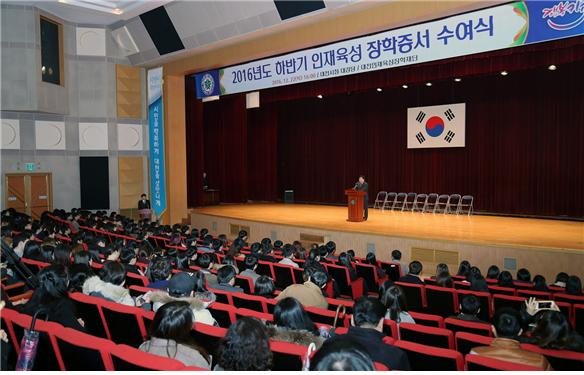 [세종TV-박경은 기자] 대전의 미래를 이끌어갈 우수인재를 조기에 발굴하고 체계적인 인재육성 지원을 위해 설립된 재단법인 대전인재육성장학재단이 지난 22일 오후 4시 시청 대강당에서 2016년도 하반기 대전인재육성 장학증서 수여식을 개최했다고 밝혔다.