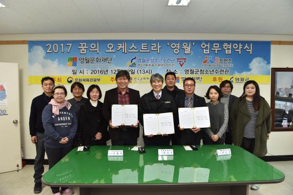 문화체육관광부가 주최하고 한국문화예술교육진흥원이 주관하는 '꿈의 오케스트라'는 베네수엘라의 '엘 시스테마(EL Sistema)' 교육 철학을 모태로 음악을 통한 사회통합에 기여하는 문화프로그램이다. 영월은 올해 ‘꿈의 오케스트라’ 예비거점기관으로 선정되어 2017년 본격적인 오케스트라 운영을 위해 준비 중이다.