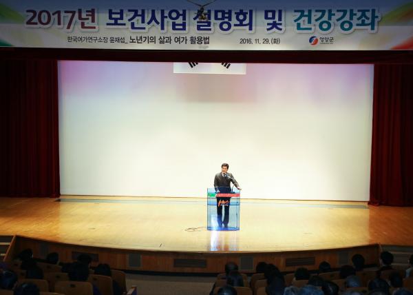 [세종TV-세종TV] 영양군은 지난 11월 29일(화) 오후 1시 영양문화체육센터에서 지역주민 300여 명이 참석한 가운데 2017년 보건사업 설명회 및 건강강좌를 개최했다고 밝혔다.
