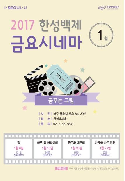 한성백제박물관, 1월 6일부터 매주 금요일 저녁 2017년 금요 시네마 운영