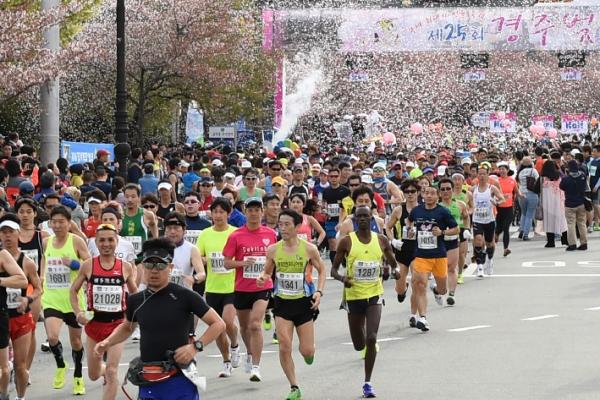 오는 4월 경주에서 열리는 ‘제26회 벚꽃마라톤대회’는 40개국 1만5000여명(내국인 1만3000, 외국인 2000)이 참여한다. 벚꽃이 활짝 핀 경주 보문관광단지와 시내 일원을 질주하면서 아름다운 풍경을 즐길 수 있다.
