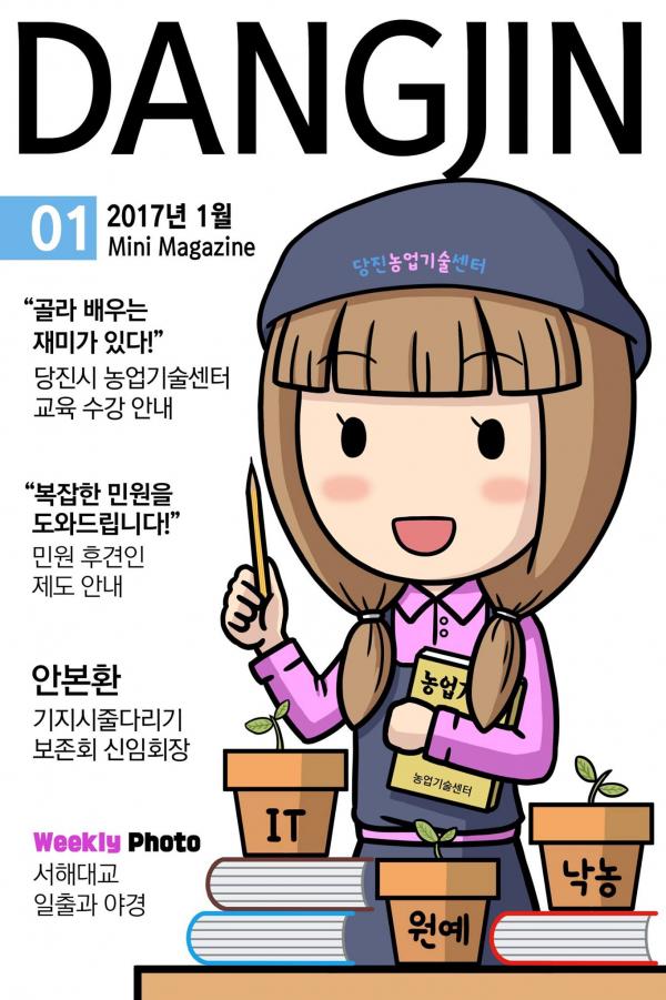 17일 발행된 제1호 매거진에서는 이달 중 접수가 이뤄지고 있는 당진시농업기술센터의 주요 교육프로그램에 대한 수강 안내와 민원 후견인제도를 소개하고 있으며, 안본환 기지시줄다리기보존회 신임회장의 취임 소감과 서해대교의 일출과 야경 사진을 수록했다.