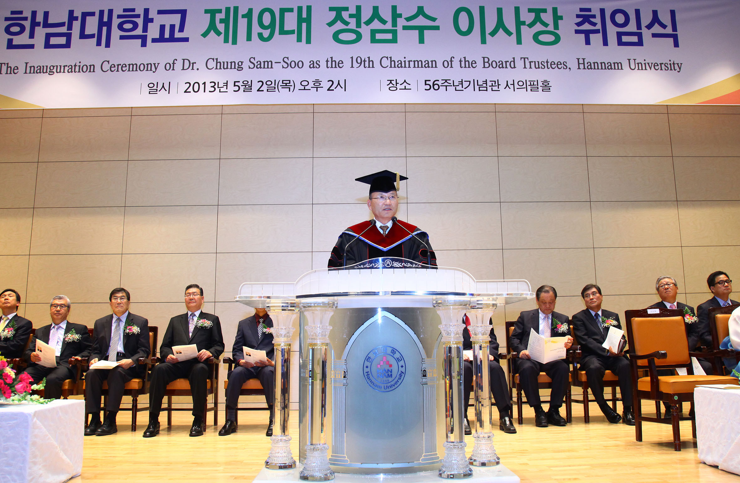 한남대 학교법인 대전기독학원은 2일(목) 오후 2시 교내 56주년기념관 서의필홀에서 제19대 정삼수 이사장(68.청주 상당교회 담임목사) 취임식을 가졌다.