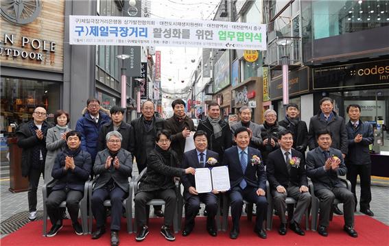 [세종TV-황대혁 기자] 대전시는 과거 대전에서 가장 번화했던 구)제일극장 거리를 살리기 위해 대전광역시, 중구청, 구)제일극장거리은행동 상가발전협의회, 대전도시재생지원센터가 지난 18일 오후 2시 은행동 구)제일극장 거리에서 업무협약(MOU)을 체결했다고 밝혔다. 구)제일극장거리은행동 상가발전협의회(이하 은행동 상가발전협의회)는 구)제일극장 거리 상점가의 건물주들로 구성된 협의체다.