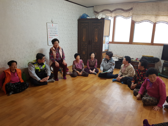 이에 김재순 파출소장은 일일이 노인정을 찾아가 야간에 걸어 다닐 때 밝은 옷을 입고 다니고, 차를 마주보며 걷기, 길을 건널때는 멈춘 후 좌우를 살핀 후 건너도록 당부하였다.