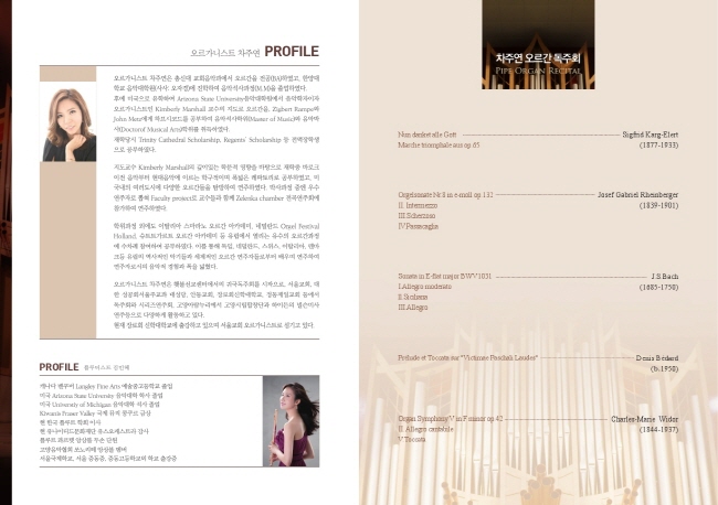 차주연 오르가니스트는 총신대 교회음악과에서 오르간을 전공했고 한양대 음악대학원에 진학해 음악석사과정을 마쳤다.