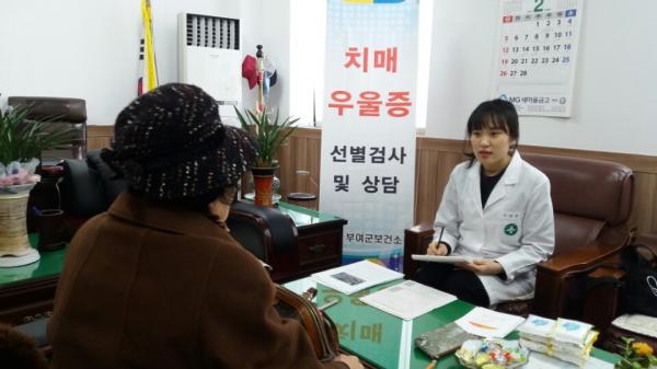 보건소에서는 대한노인회 부여군지회와 협업하여 치매선별검사를 실시하고 있으며, 지난해에는 11,035명에게 치매선별검사를 실시, 133명의 치매환자를 조기 발견했다.
