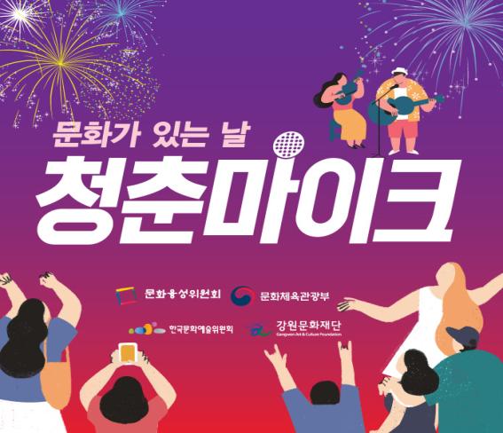 2016년에 처음으로 시행한‘청춘마이크’사업은 전문 예술인을 꿈꾸는 청년예술가를 대상으로 오디션을 통해 지원자를 선발 매달 마지막 수요일‘문화가 있는 날’에 공연할 수 있는 기회를 제공함으로써 전문 예술인으로의 성장 발판을 마련해 주는 사업이다.