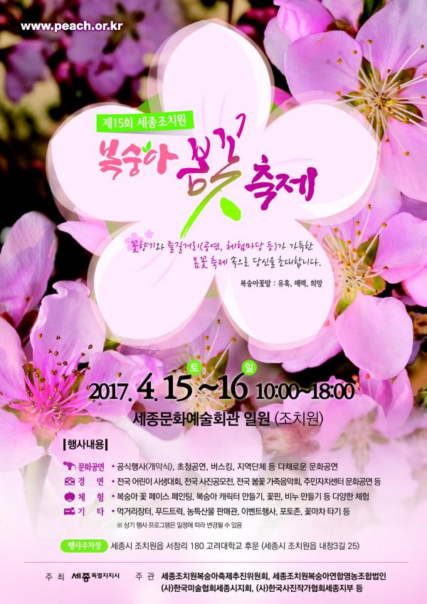 한편, 제15회 세종 조치원복숭아 봄꽃축제는 오는 4월 15일과 16일 세종시문화예술회관 일원에서 개최된다.