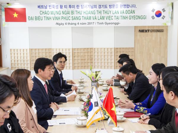 김동근 경기도 행정2부지사는 4일 오전 10시 30분 경기도청 국제회의실에서 황 티 투이 란(Hoang Thi Thuy Lan) 베트남 빈푹성 당서기를 만나 양 지역 간 경제통상 교류협력과 한-베트남 관계 발전방안에 대해 의견을 나눴다.