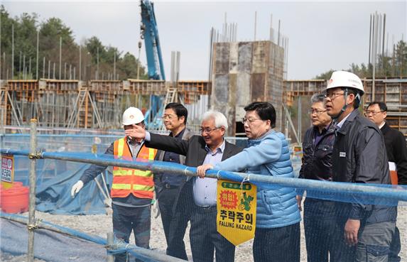 먼저 권 시장은 유성구 복용체육공원 내 위치한‘장애인형 국민체육센터 건립공사’현장을 방문해 공사 진행상황을 설명 듣고 현장소장과 근로자들의 애로사항을 청취하며 노고를 격려했다.