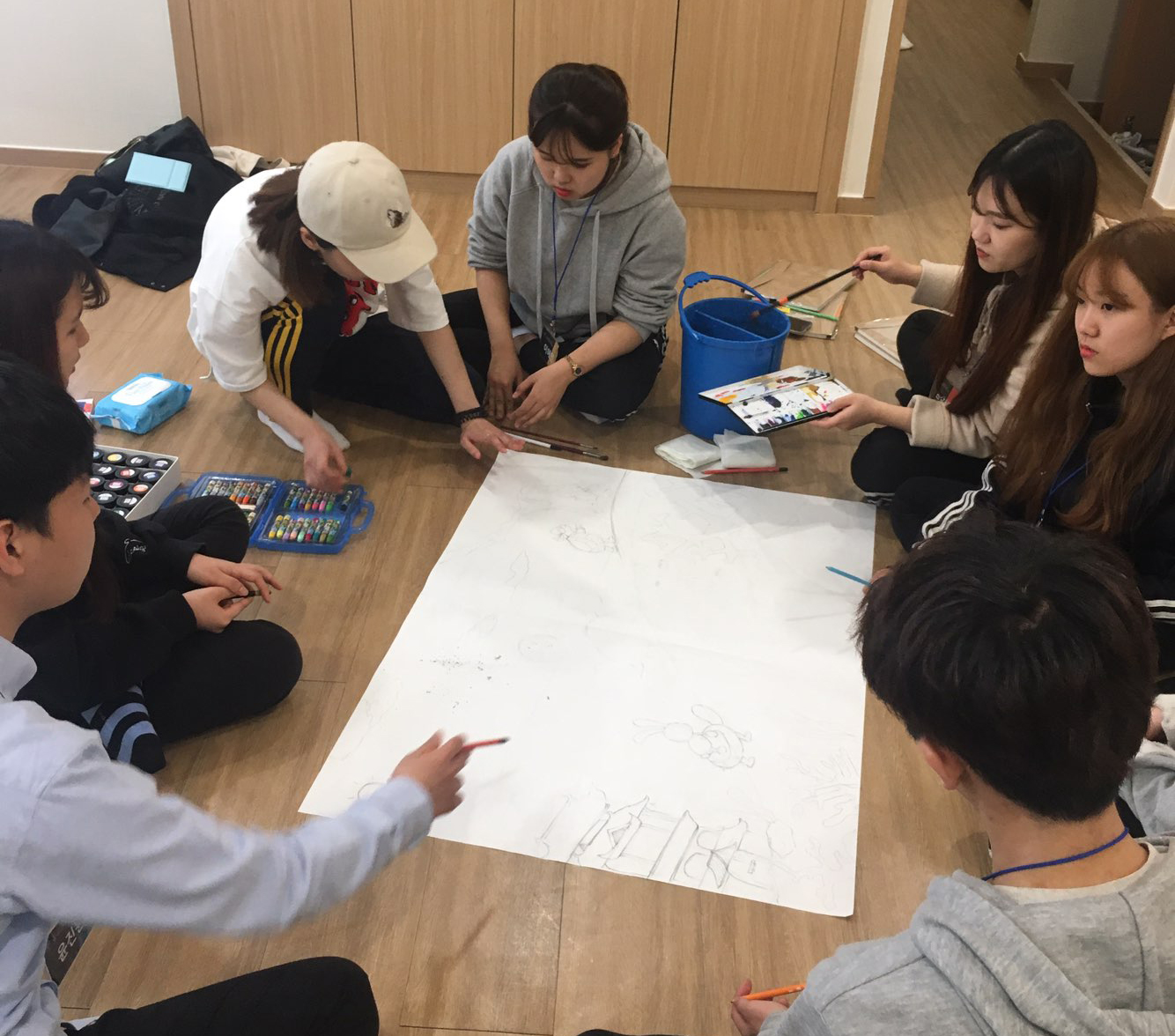 향후 벽화 봉사를 염두에 두고 마련한 이 프로그램은 학과 내 신입생을 포함한 선후배들이 한 조를 이뤄 주어진 상황에 맞게 대형 캔버스에 그림을 그리도록 하는 것이다.