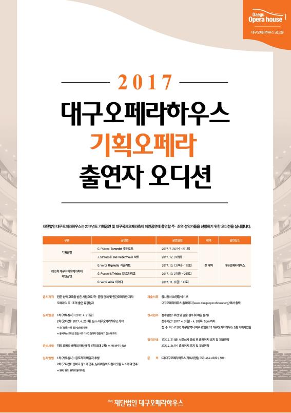 ※ 접수처 및 문의처 : 대구오페라하우스 기획사업팀 053-666-6032