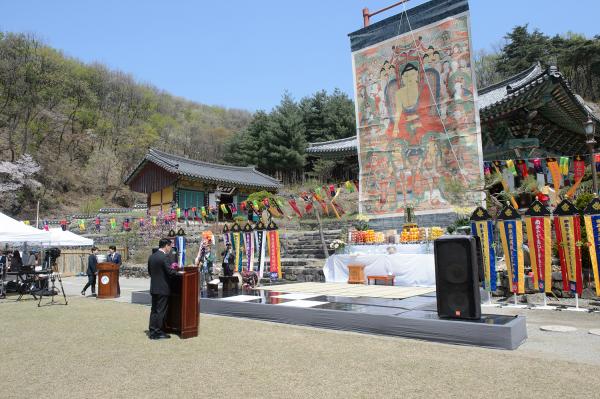 1부 행사는 비암사에서 오전 9시 30분부터 불교전통의 영산대재로 괘불이운, 명중, 삼귀의, 반야심경, 시식, 범패, 위령 문화행사 순으로 진행되었다.