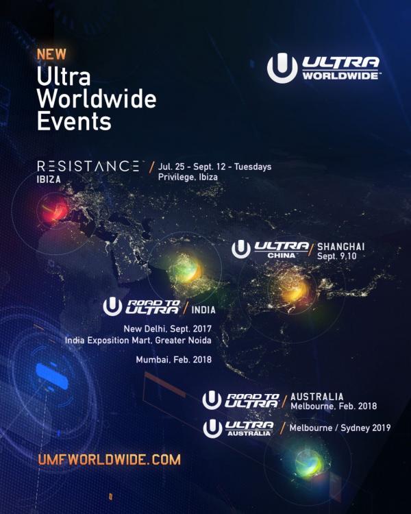 올해 처음으로 중국에서는 9월 9일과 10일 양일간 상하이에서 개최되며, 인도에서는 올해 9월 뉴델리와 2018년에는 뭄바이에서 로드 투 울트라(Road to Ultra)가 개최된다. 호주에서도 내년 2월 멜버른에서 로드 투 울트라를 시작으로 그 이듬해인 2019년 울트라 뮤직 페스티벌 오스트레일리아(ULTRA AUSTRALIA) 개최가 확정되었다.