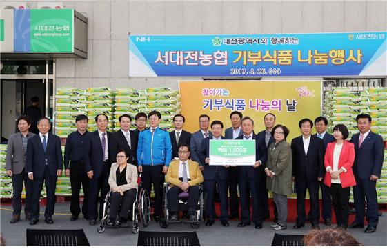 [세종TV-황대혁 기자] 대전광역시는 지난 26일 서대전농협 본점 야외 주차장에서 어려운 이웃을 위한 ‘찾아가는 기부식품 나눔의 날’행사를 가졌다고 밝혔다.