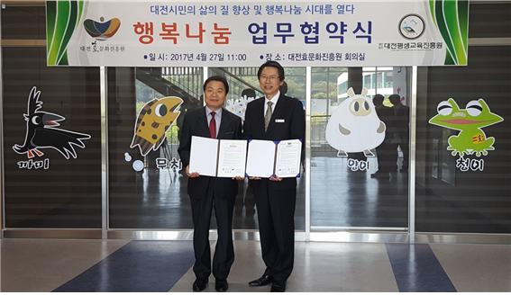 [세종TV-황대혁 기자] 대전시는 대전평생교육진흥원과 대전효문화진흥원이 지난 27일(목) 오전 11시 효문화진흥원 회의실에서 업무 협약을 체결했다고 밝혔다.