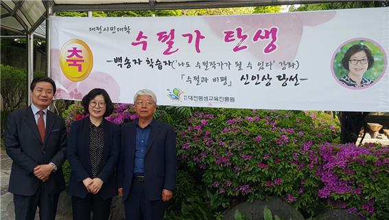 송용길 원장은 “2015년도 수필가 마기영, 2016년도 동화작가 서혜영, 2017년도 수필가 윤선경 수강생의 등단에 이어 또 수필가가 배출됐다”며 “대전이 인문학을 통해 수준 높은 문화도시로 발전하는데 기여하도록 대전시민대학에 더욱 큰 성원을 바란다”고 당부했다.