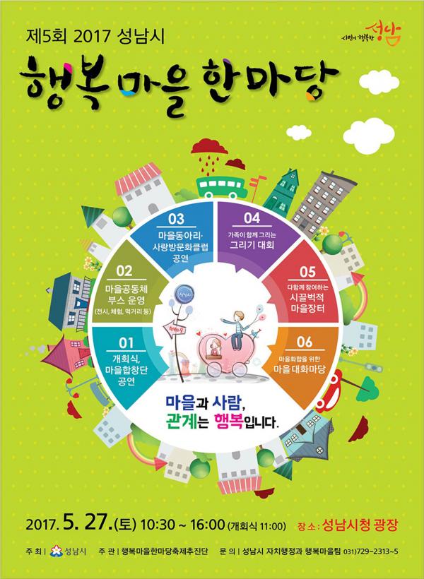 성남시는 이날 오전 10시 30분부터 오후 4시까지 시민 1000여 명이 참여한 가운데 ‘제5회 행복마을 한마당’ 행사를 연다고 밝혔다.