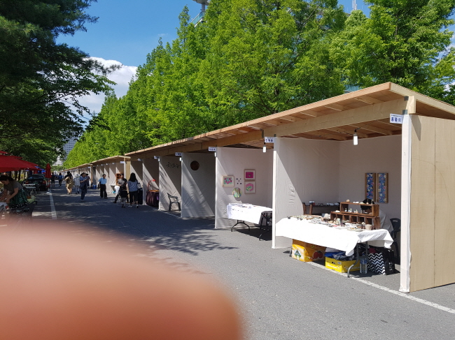 이를 위해 한국예총 대전시연합회와 서구문화원 등의 협조를 통해 예술인과 화가들을 참여시켜 작품을 전시할 수 있는 공간을 보라매공원 양 편에 3평 규모의 칸막이 시설을 100여개 정도 설치해 놓았다.