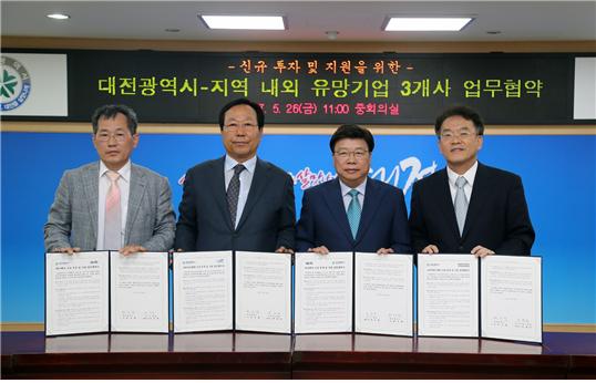대전시와 협약참여 3개 사는 앞으로 각각 지역 내·외 본사, 공장 등의 이전 및 신설 신규투자를 통해 고용창출과 지역경제 발전에 공동노력하기로 했다.