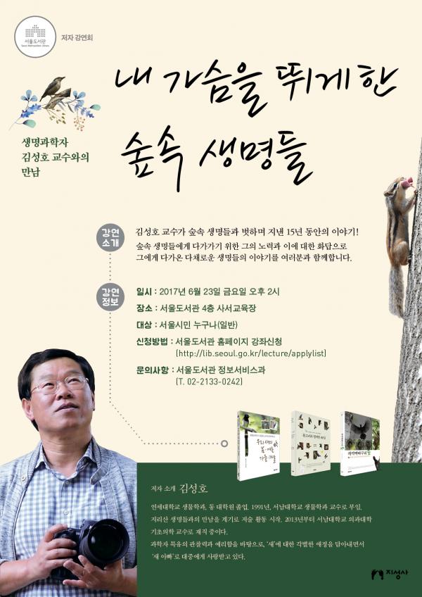 이를 바탕으로 도서 ‘우리 새의 봄·여름·가을·겨울’을 출간했고 서울도서관에서 시민들과 만남을 통해 책에 담긴 다양한 숲 속 생명들의 이야기를 함께 나누고자 한다.