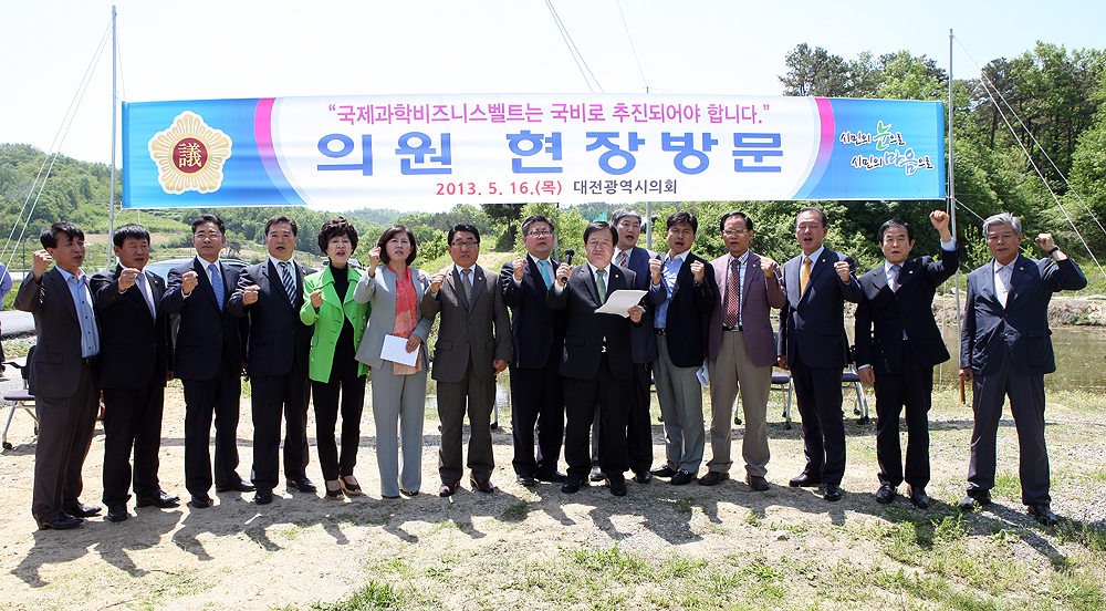 이날 현장방문은 과학문화산업본부장과 LH의 관계관으로 부터 사업진행상황 보고청취 후 김경시 운영위원장 주관으로 국제과학비즈니스벨트사업을 전액국비로 정상추진해 줄 것을 정부에 강력히 촉구하는 전체시의원들의 의견을 담아 “정상추진”과 “전액국비”의 구호제창을 실시했다.