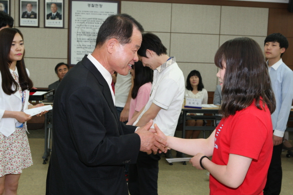 정용선 대전경찰청장은 16일(목) 청사 6층 대회의실에서 보안협력위원연합회와 대전청 지휘부 등 50여명이 참석한 가운데 탈북청소년들에게 장학금을 수여하고 북한이탈주민에 대한 ‘4대 사회악 근절’및‘안전하고 행복한 대전 만들기’에 보안협력위원연합회와 협력체제를 구축 추진하기로 헸다.