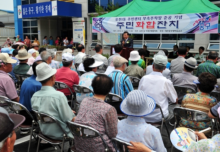 대전시 중구(구청장 박용갑) 유천1동 주민자치센터는 18일 ‘주민센터 부속주차장 조성을 기념하는 주민화합잔치를 개최했다.