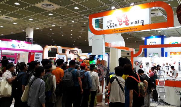안동국제탈춤페스티벌은 이번 박람회에서 3,000여 부의 축제·관광 홍보물을 배부했으며, 전시패널에는 50여 점의 독특하고 화려한 세계탈을 전시해 관람객의 시선을 사로잡았다. 유료로 진행한 클레이탈 만들기 체험에는 가족과 동반한 어린이 등 200여 명이 참가했고, 경품행사인 룰렛 이벤트에는 총 12회 1,000여 명이, 탈춤축제 홍보 SNS 이벤트에는 총 6회 200여 명이 참가해 텀블러, 탈 목걸이, 탈 열쇠고리 등 다양한 홍보 기념품을 선물 받으며 박람회를 즐겼다.