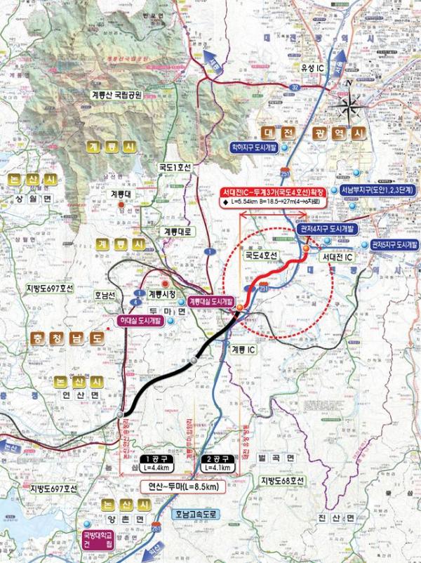 대전시 관계자는 “해당 도로가 개설되면 교통혼잡비용을 획기적으로 줄일 수 있으며, 광역교통망의 효율성도 강화돼 대전과 계룡ㆍ논산 간 교류 활성화로 상생발전을 가속화하는 계기가 될 것”이라고 말했다.