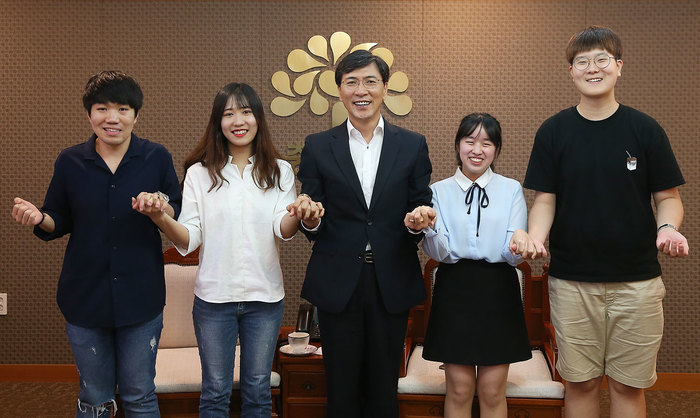 안희정 충남도지사는 12일 도지사 접견실에서 대한민국시도지사협의회 제9기 지방분권 대학생 SNS 홍보단 단원들을 만나 지방분권을 주제로 대담을 가졌다.