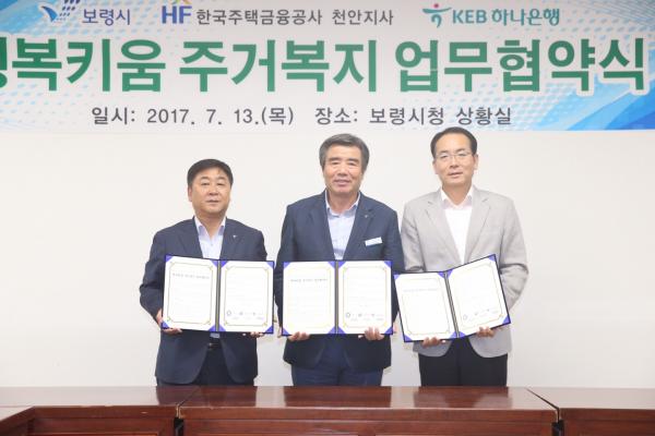 보령지역 어려운 가정의 주거복지와 금융지원을 위해 보령시와 한국주택금융공사, KEB하나은행이 손을 맞잡았다.
