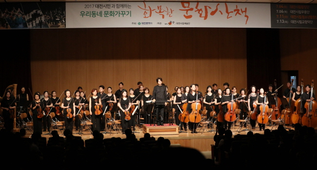 마지막 날인 13일에는 국내 최정상급 오케스트라로 자리를 굳힌 대전시립교향악단이 ‘무더운 여름날의 시원한 울림을 주제’로 아름다운 오케스트라 선율과 함께 지휘자 류명우의 흥미와 센스 넘치는 클래식 해설을 곁들이며 귀에 익숙한 명곡들의 세계로 이끌었다.