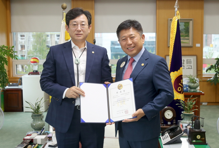 대전시의회 김경훈 의장은 10일 의장실에서 국제라이온스협회 356-B지구 김동원 신임 총재로부터 국제라이온스협회 연수원 교수위원으로 위촉장을 받았다.