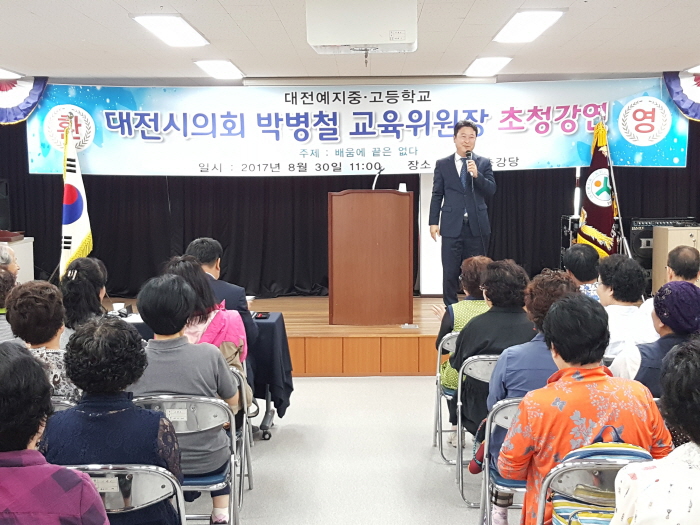 ,대전시의회 박병철 교육위원장(더불어민주당)은 30일 대전예지중·고등학교에서“배움에 끝은 없다”라는 주제로 특강을 진행했다.