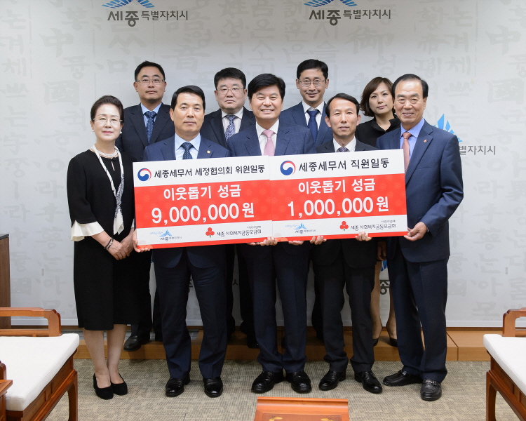 세종세무서 정기현서장은 25일 오후 3시 세종시청을 방문해 어려운 이웃돕기 성금 1000만원을 기탁했다.